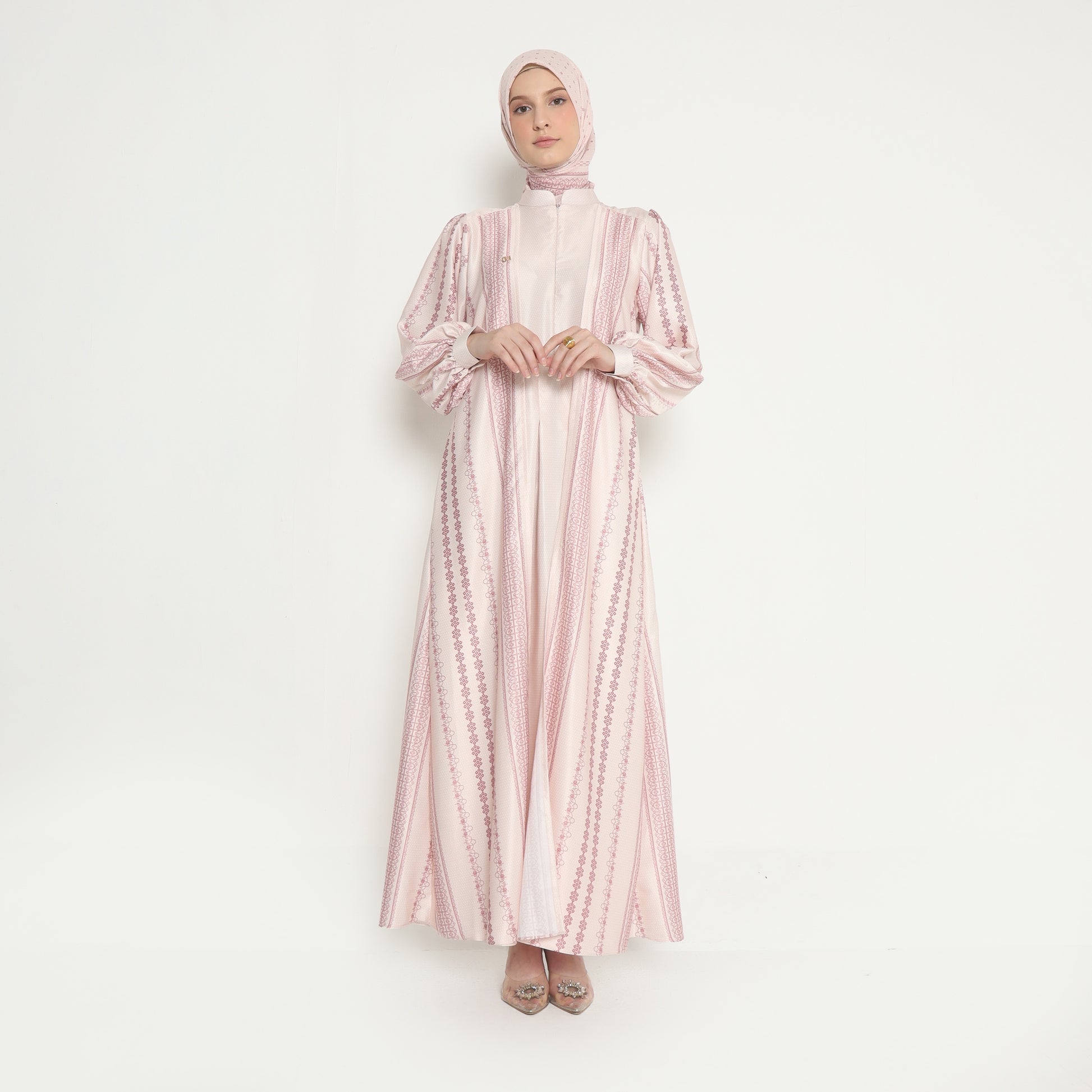 The Daisha Dress in Lace Pink radiates delicate elegance with its intricate lace detailing and flowing silhouette. Crafted from luxurious, soft fabric, it features a feminine high neckline and gracefully billowing sleeves that enhance its romantic charm. The light pink hue and exquisite lace overlay evoke a sense of timeless sophistication, making it perfect for special occasions and elegant gatherings. With its harmonious blend of grace and refinement, the Daisha Dress in Lace Pink is a stunning statement of understated beauty and femininity.