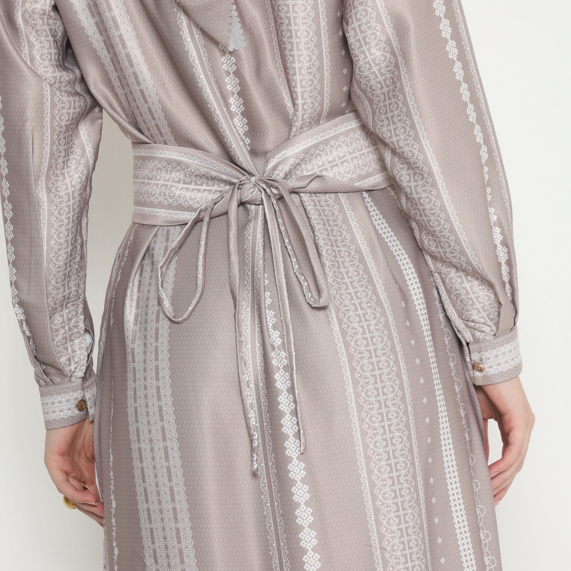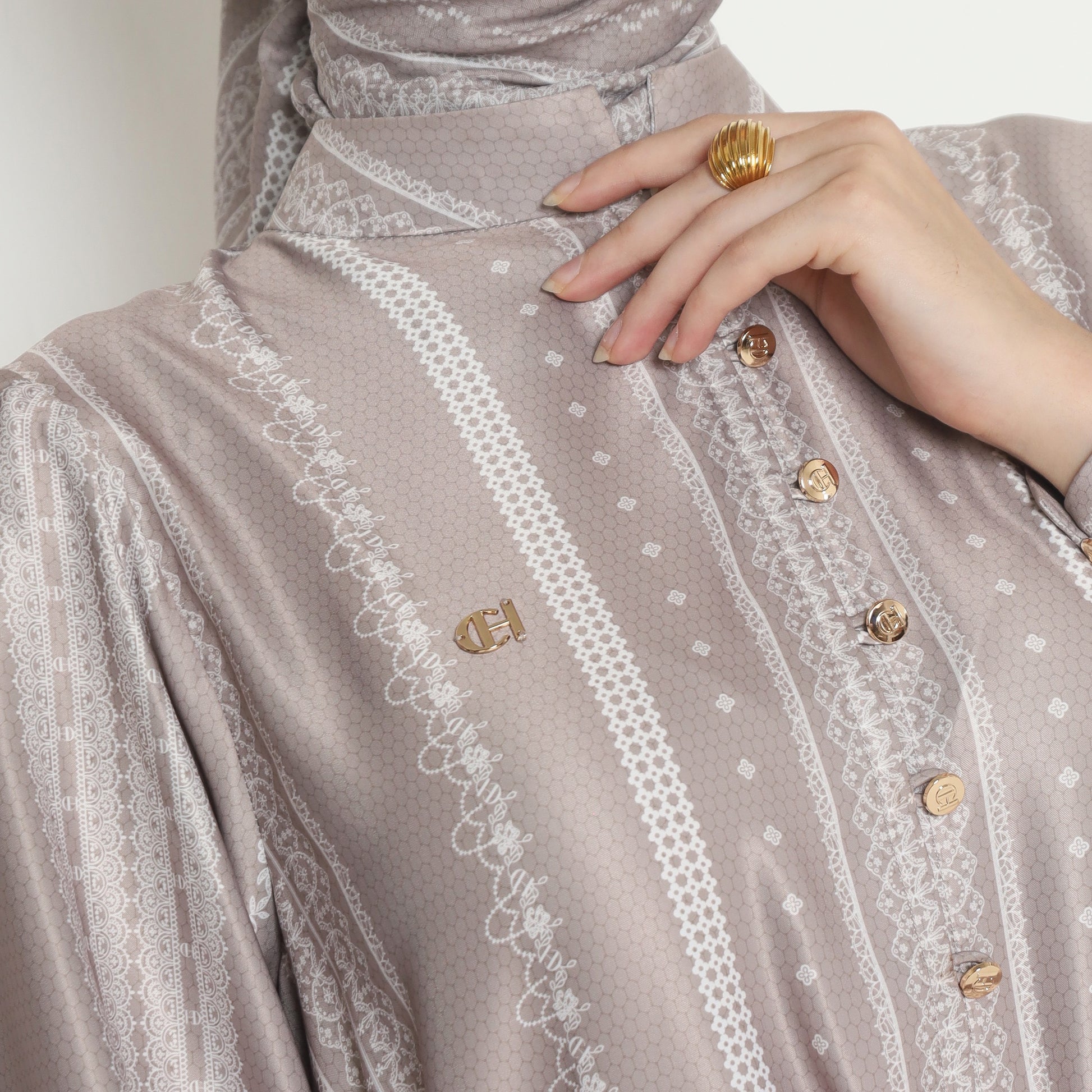 The Dilna Dress in French Taupe embodies refined elegance with its flowing silhouette and intricate detailing. Crafted from soft, luxurious fabric, it features delicate patterns and subtle shimmer that exude timeless sophistication. The high neckline and gracefullong sleeves enhance its modest charm, while the tiered hem adds a touch of romantic femininity. Perfect for special occasions or sophisticated gatherings, the Dilna Dress in French Taupe seamlessly combines classic beauty with modern grace, making it a stunning statement piece.