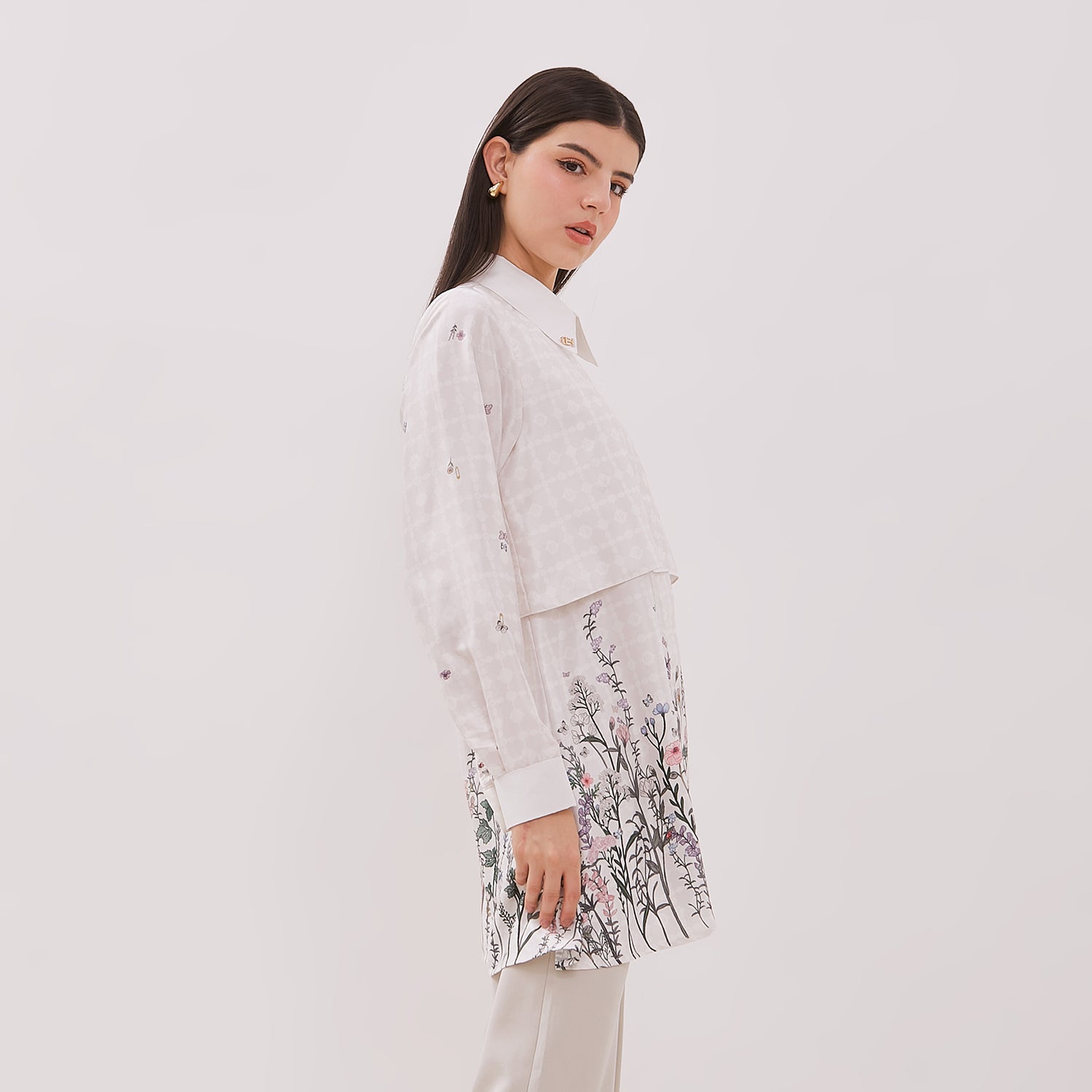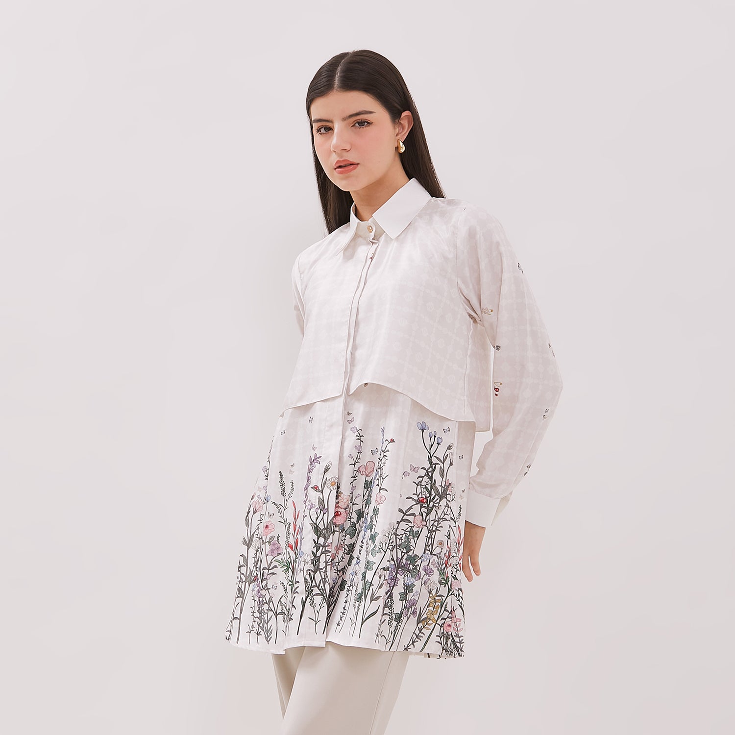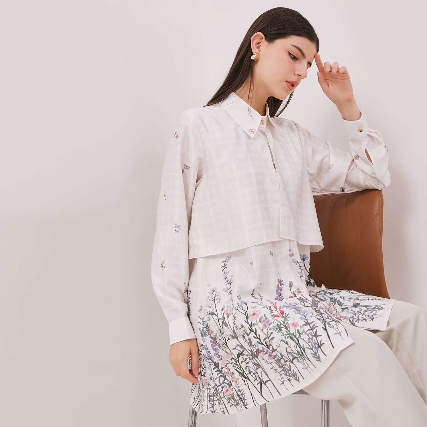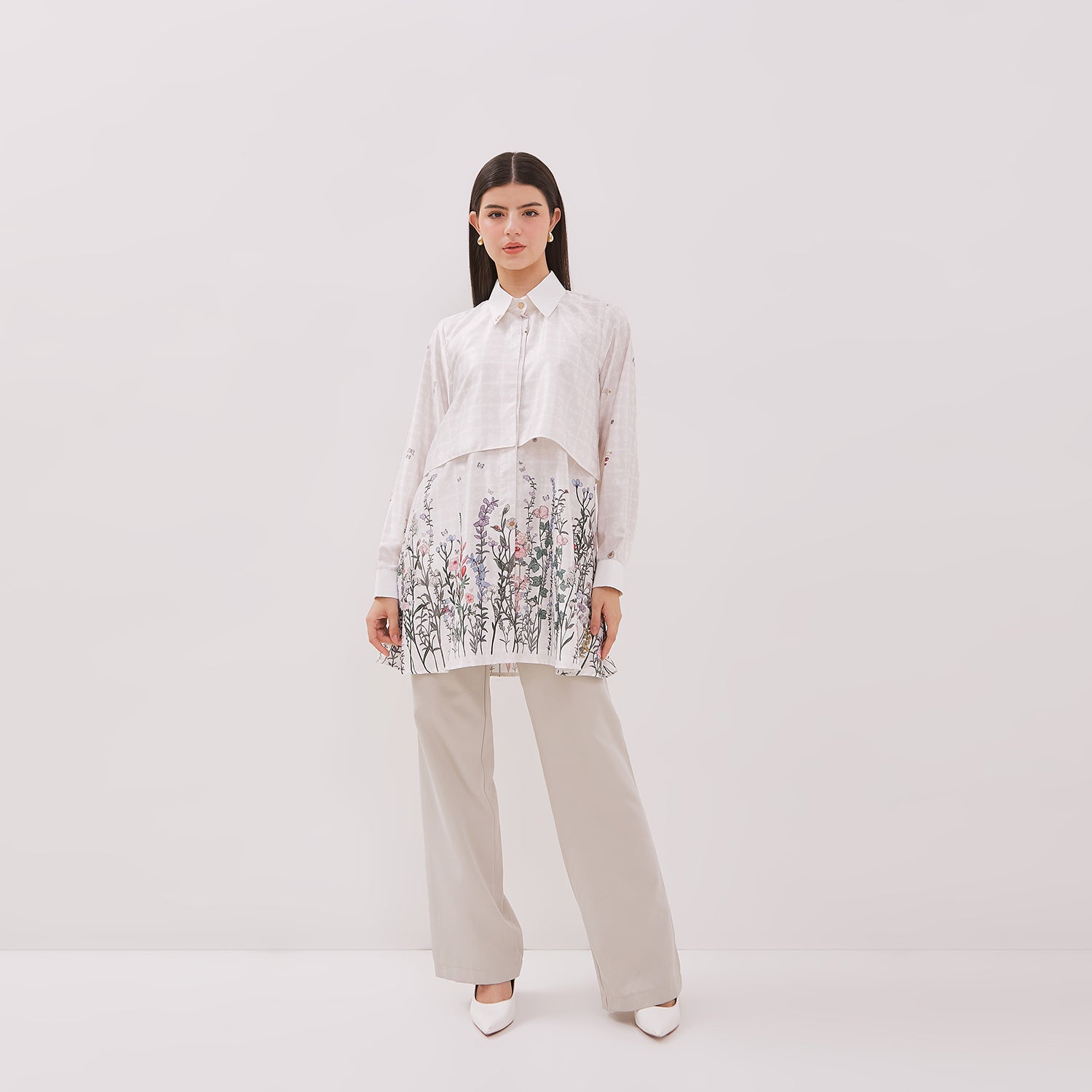 Effortless elegance with Heidi Tunic, a sophisticated piece that beautifully combines delicate embroidery with a relaxed silhouette. Crafted from soft, high-quality fabric, this tunic features a classic collar and button-down front, with an exquisite floral motif that blooms across the hem, adding a touch of artistry and femininity. Its layered design and gentle drape make it perfect for elevating your everyday wardrobe, offering timeless style and graceful comfort for any occasion.
