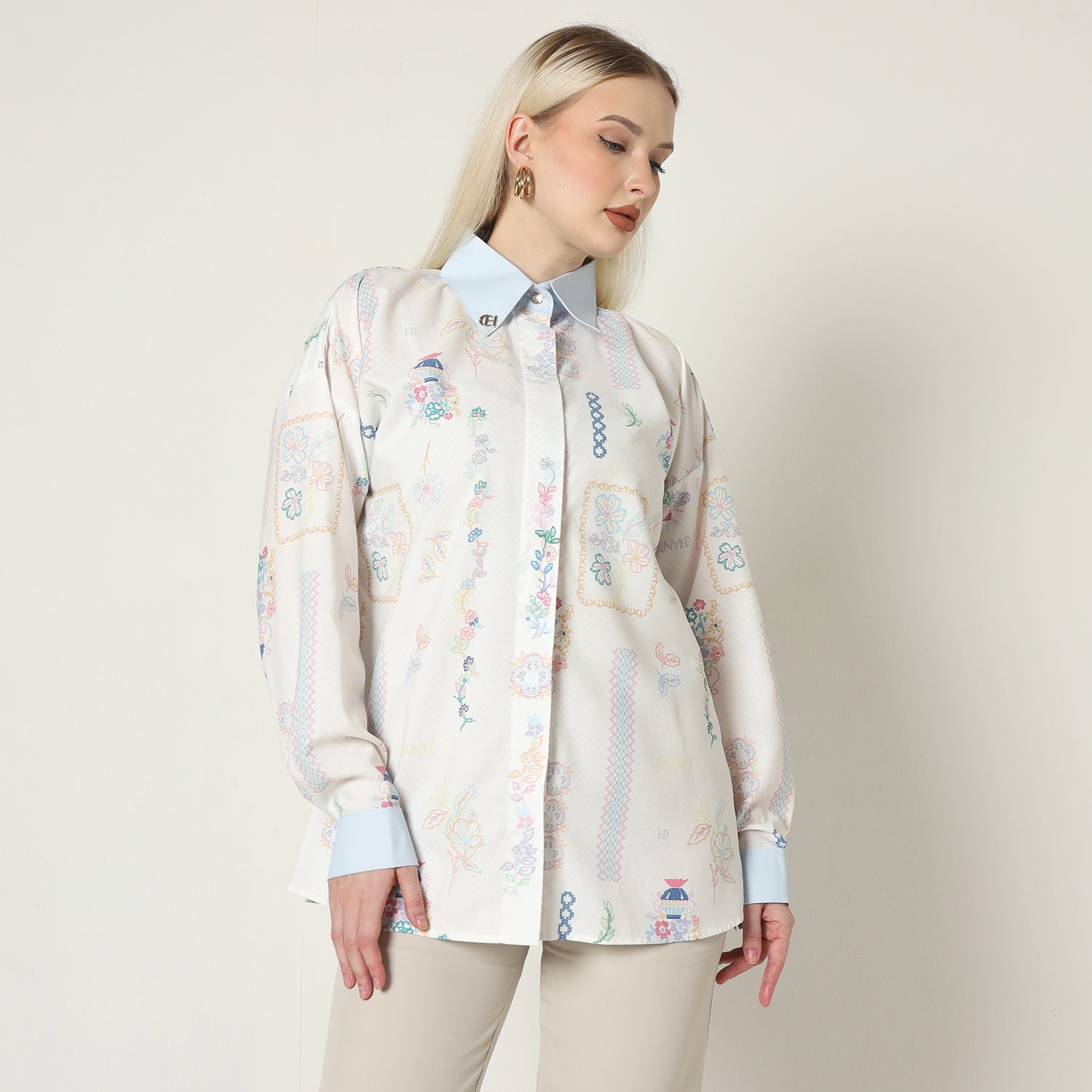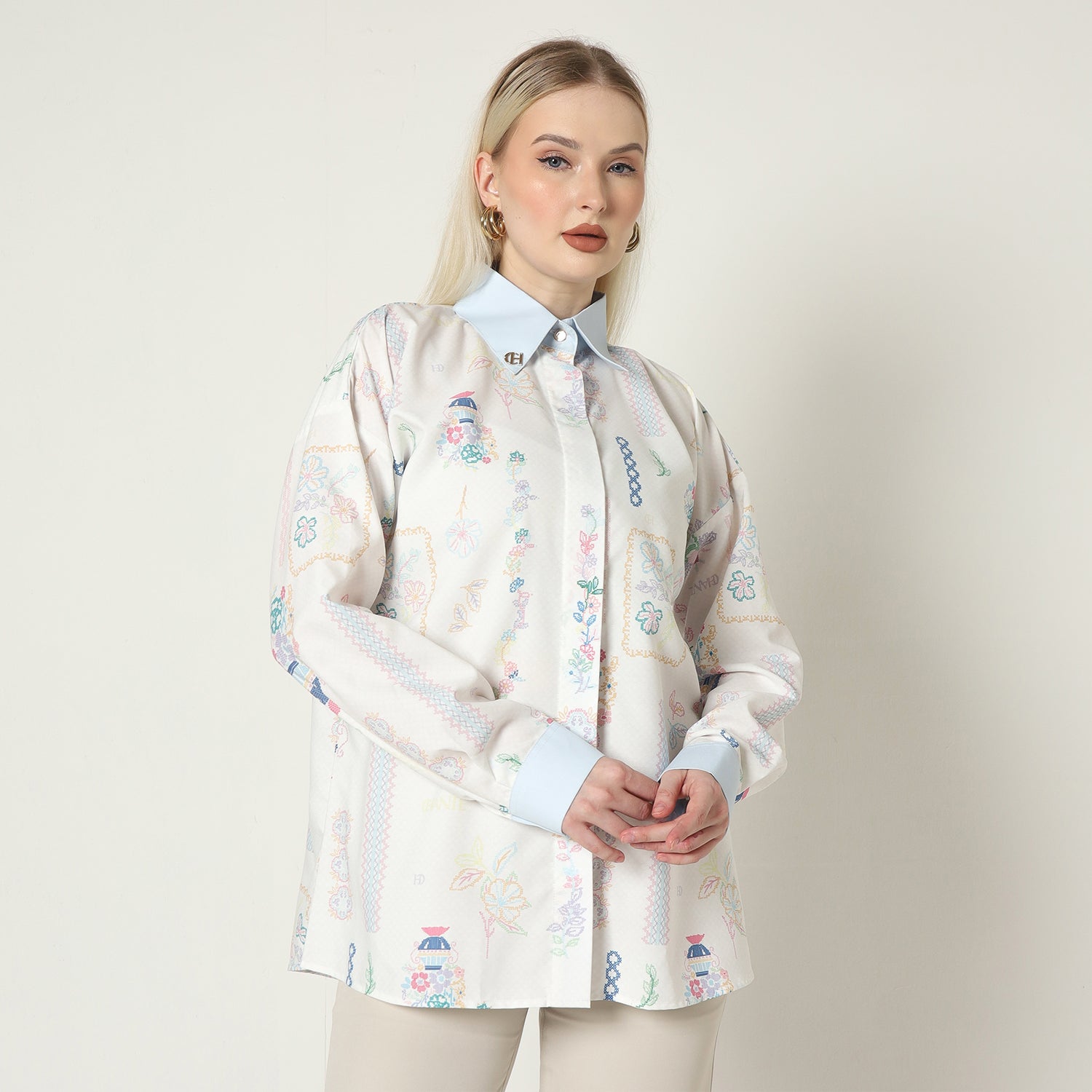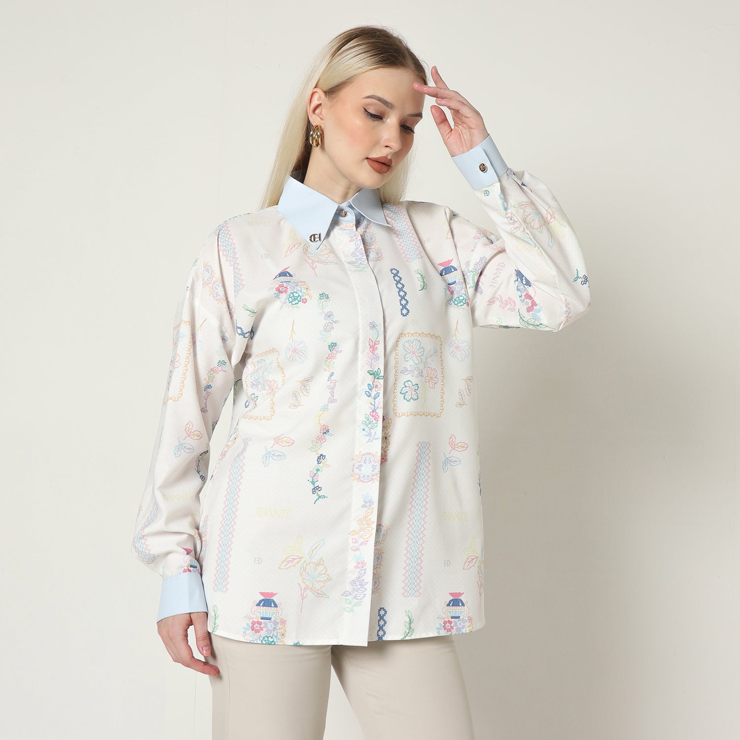 Odelya Shirt embodies a touch of delicate elegance with its soft pastel palette and subtle floral motifs, creating an effortlessly graceful aesthetic. Crafted from lightweight, finely woven fabric, it features a refined collar and gently tailored silhouette, complemented by contrasting cuffs and collar trims that add a hint of sophistication. Its understated design and charming details make Odelya Shirt an ideal choice for those seeking a blend of classic refinement and contemporary serenity in their wardrobe.