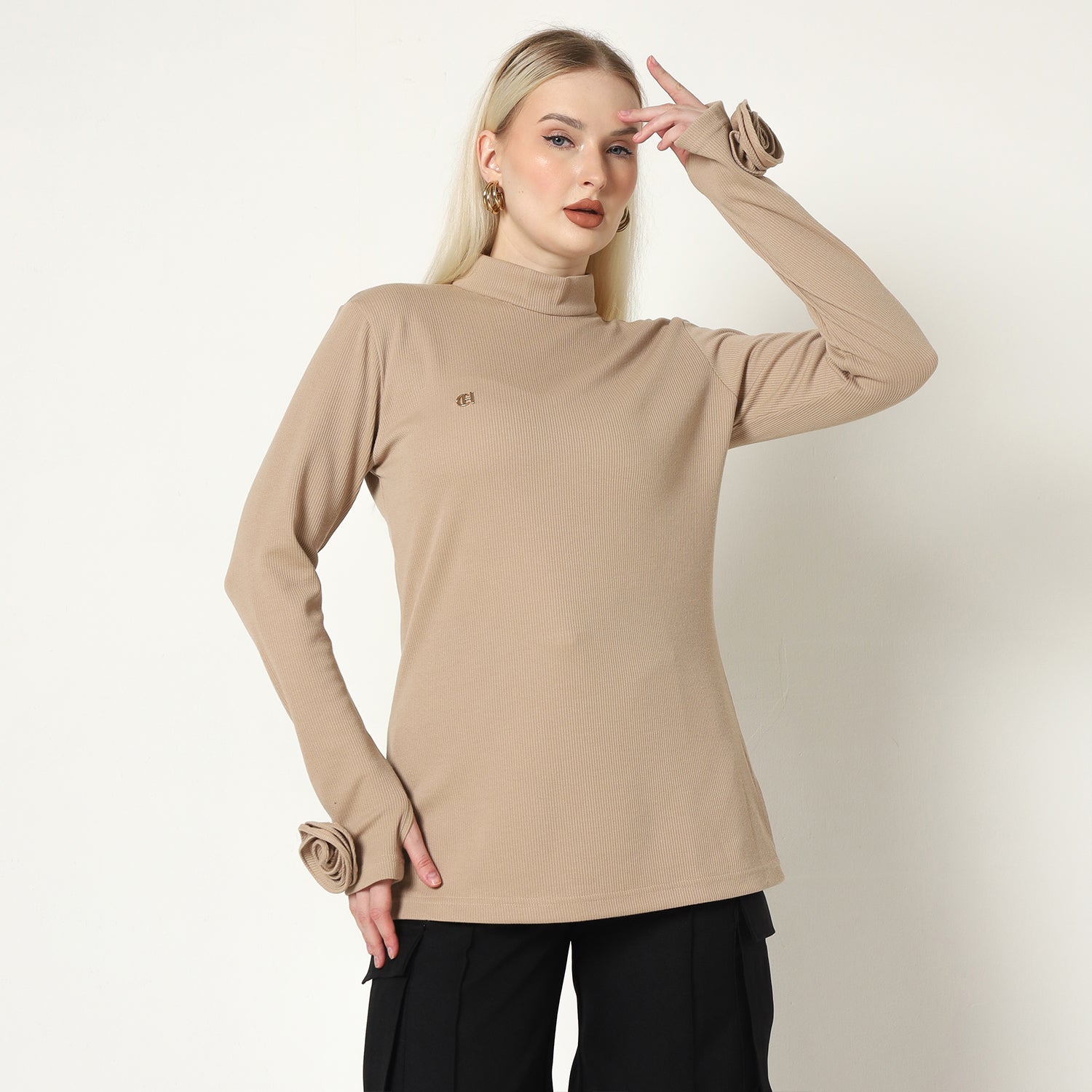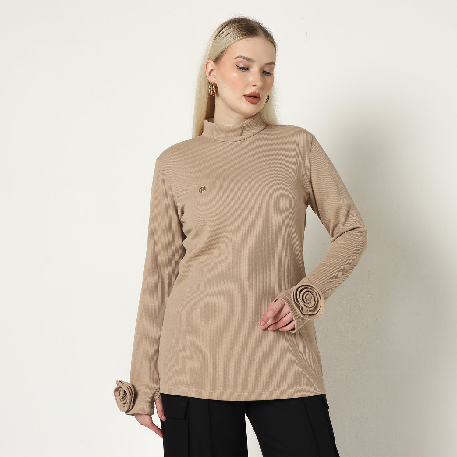 Ova Knit exudes understated elegance, crafted from soft, sumptuous fabric that offers both comfort and sophistication. Its sleek, streamlined silhouette is enhanced by the high turtleneck design, creating a timeless and versatile piece ideal for layering or standalone wear. Delicately embroidered roses on the sleeves add a subtle touch of floral charm, while the rich, neutral color palette ensures effortless pairing with any wardrobe. Ova Knit embodies refined simplicity, making it a chic and cozy addition for those who appreciate classic style with a refined edge.