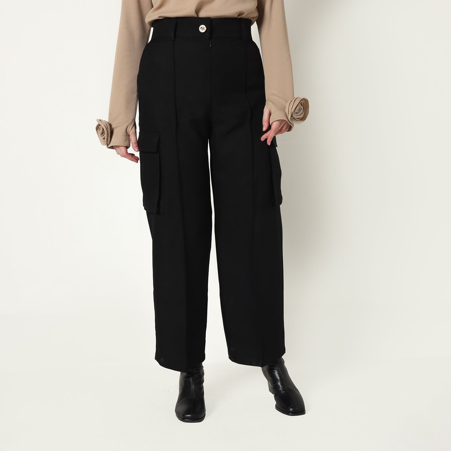 Ozara Pants embody sophisticated elegance with their tailored fit and refined design. Crafted from luxurious fabrics, they offer a perfect balance of comfort and style, featuring subtle pleats and a high-waisted silhouette that elongates the legs. Detailed with discreet side pockets adorned with elegant tassels, these pants exude a chic, modern vibe while remaining timeless in appeal. Whether in classic neutral or rich deep tones, Ozara Pants are a versatile and graceful addition to any wardrobe, ideal for elevating both professional and casual ensembles with effortless poise.